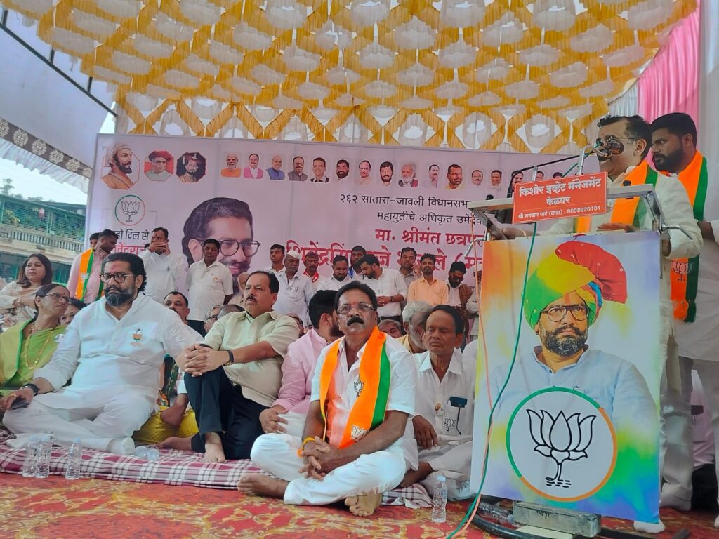 सातारा- जावली विधानसभा मतदारसंघाचे भाजप महायुतीचे अधिकृत उमेदवार आ. शिवेंद्रसिंहराजे यांच्या प्रचारार्थ केळघर ता. जावली येथे आयोजित भव्य मेळाव्यात ते बोलत होते. व्यासपीठावर जिल्हा परिषदेचे माजी उपाध्यक्ष वसंतराव मानकुमरे, माजी सदस्य अर्चना रांजणे, सातारा जिल्हा मध्यवर्ती सहकारी बँकेचे संचालक ज्ञानदेव रांजणे, कांचन साळुंखे, भाजपाचे तालुकाध्यक्ष श्रीहरी गोळे ,बाजार समितीचे सभापती जयदीप शिंदे, रामभाऊ शेलार, शिवसेनेचे एकनाथ ओंबळे, आरपीआयचे एकनाथ रोकडे, प्रशांत तरडे, सागर धनावडे, मोहन कासुर्डे, दत्ता पवार, पांडुरंग जवळ, प्रमोद पार्टे, हरिभाऊ शेलार, बबन बेलोशे, नाना जांभळे, कविता धनावडे, निर्मला दुधाने, संतोष कासुर्डे, विकास ओंबळे, राजू खुडे, अंकुश बेलोशे विकास देशपांडे , आदिनाथ ओंबळे , विकास ओंबळे , पांडुरंग जवळ , जयश्री शेलार आदी मान्यवरांसह कुसूंबी गटातील सर्व आजी- माजी पदाधिकारी, महायुतीतील सर्व पक्षांचे पदाधिकारी, कार्यकर्ते आणि ग्रामस्थ व माता- भगिनी हजारोंच्या संख्येने उपस्थित होत्या.