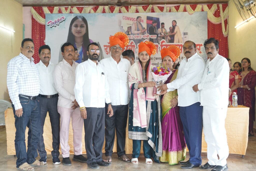 यावेळी डॉ पल्लवी पवार हिचा उपस्थित मान्यवरांचे शुभहस्ते सत्कार करून तिच्या पुढील वाटचालीसाठी शुभेच्छा देण्यात आल्या . यावेळी उपस्थितांचे स्वागत श्री विकास पवार यांनी केले तर उपस्थितांचे आभार डॉ पल्लवी पवार यांनी मानले .