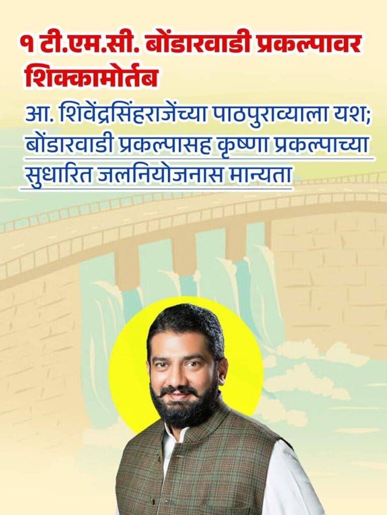 बोंडारवाडी प्रकल्पासह कृष्णा प्रकल्पाच्या सुधारित जलनियोजनास मान्यता .. आ . शिवेंद्रसिहराजेंच्या पाठपुराव्याला यश .. १ टी . एम . सी . बोंडारवाडी प्रकल्पावर शिक्कामोर्तब …